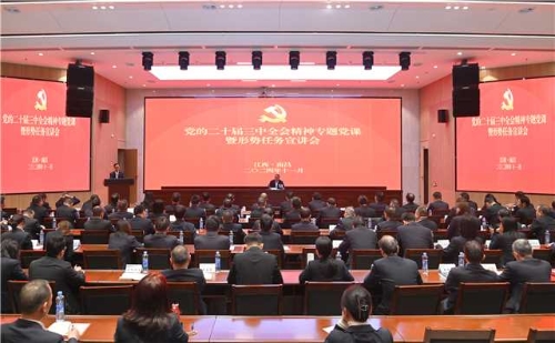 11月25日,根據國務院國資委黨委和中國電建黨委工作安排,江西水電公司黨委舉辦了黨的二十屆三中全會精神專題黨課暨形勢任務宣講會。 會議以《全面貫徹黨的二十屆三中全會精神 推動公司高質量發展再上新臺階》為題,全面系統地解讀了黨的二十屆三中全會精神的重要意義、基本內容,具體闡述了進一步全面深化改革的重點任務和國資國企改革內容,引導公司黨員、干部正確認識當前經濟形勢和公司面臨的改革發展形勢任務,并聚焦公司改革發展重點提出推動高質量發展的思路和方向。 會議指出,公司正處在全面深化改革的關鍵期,推動轉型升級的關鍵期,面對新形勢、新任務、新挑戰,既要看到短期波動的“形”,更要看到長期發展的“勢”,保持戰略定力,增強發展信心,錨定目標任務,以更加強烈的責任擔當,砥礪前行,搶抓機遇,應對挑戰,不斷拓寬發展新空間,塑造新優勢,增添新動能。 會議要求,各單位要持續提升核心競爭力,強化戰略使命,全力抓好市場營銷,推動經營穩步增長;要強化管理提升,堅持創新驅動引領,提高項目精益化管理水平,著力防范化解風險,提升發展效能效率;要縱深推進全面深化改革,做實做細任期制和契約化管理,加強授放權管理工作,增強發展活力動能;要堅持黨建統領,抓好項目黨建工作,加強支部品牌建設,縱深推進全面從嚴治黨,持續賦能高質量發展。 會議強調,面對國資國企改革任務,江西水電黨委使命光榮,重任在肩,始終把學習好、貫徹好、落實好黨的二十屆三中全會精神作為重大政治任務,發揚改革精神,落實改革舉措,堅定不移做強做優做大國有企業,持續推動公司高質量發展再上新臺階。 會議設置主會場和視頻分會場,公司在昌領導班子成員、高管、副總師、高級職員、各職能部門負責人、二級單位黨政主要負責人及部分黨員代表參加,共計150余人。 |